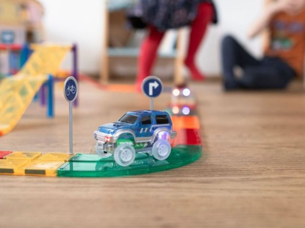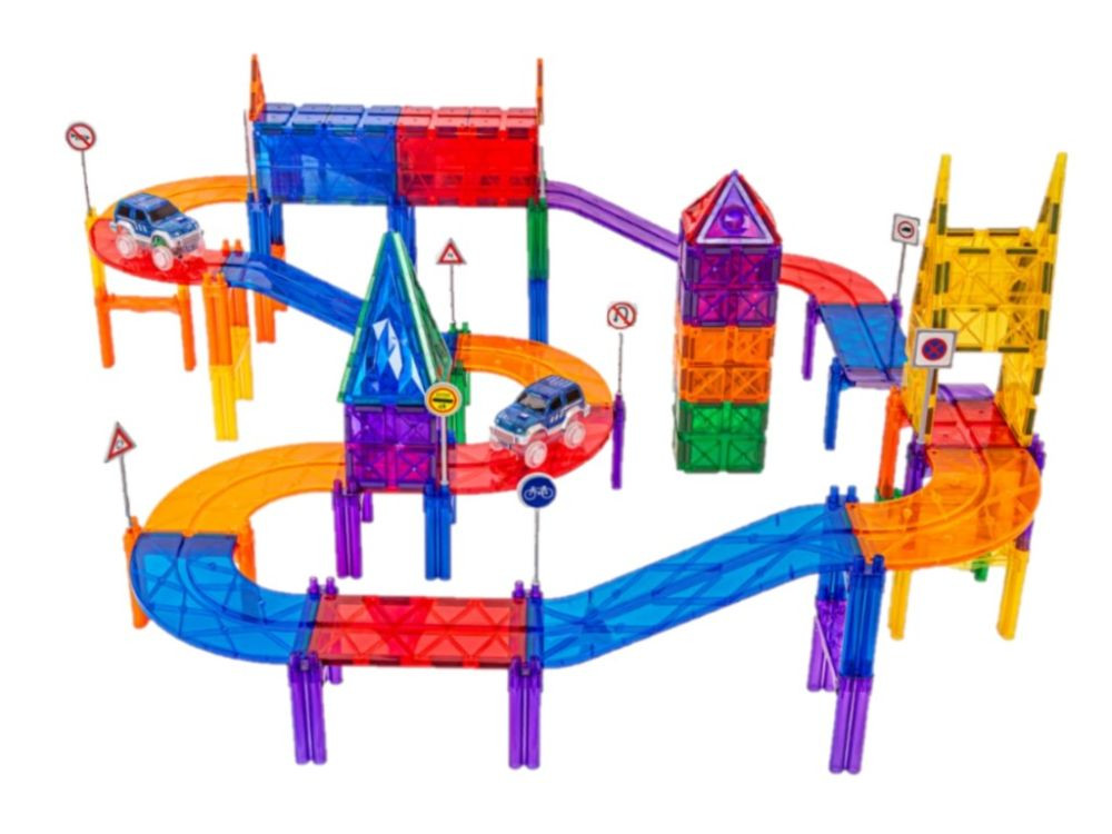 100 darabos mágneses autópálya építőjáték utakkal, hidakkal és kisautókkal. Kreatív, fejlesztő játék 3 éves kortól, amely támogatja a térlátást és a motorikus készségeket.
