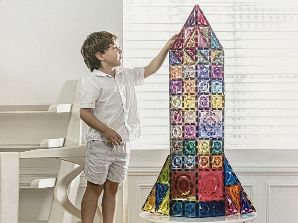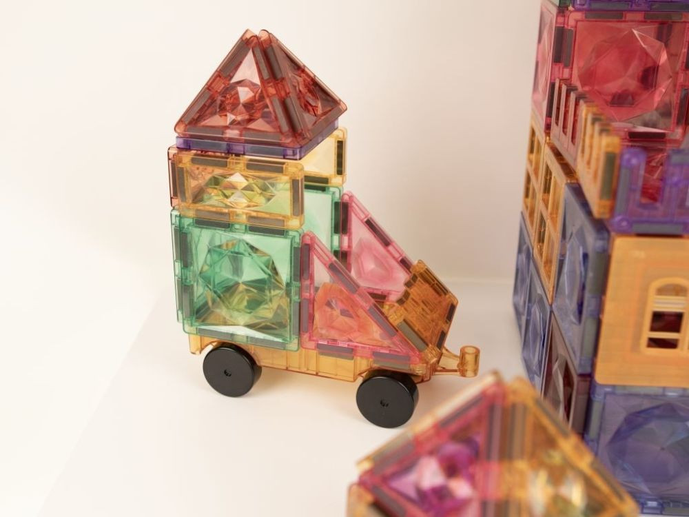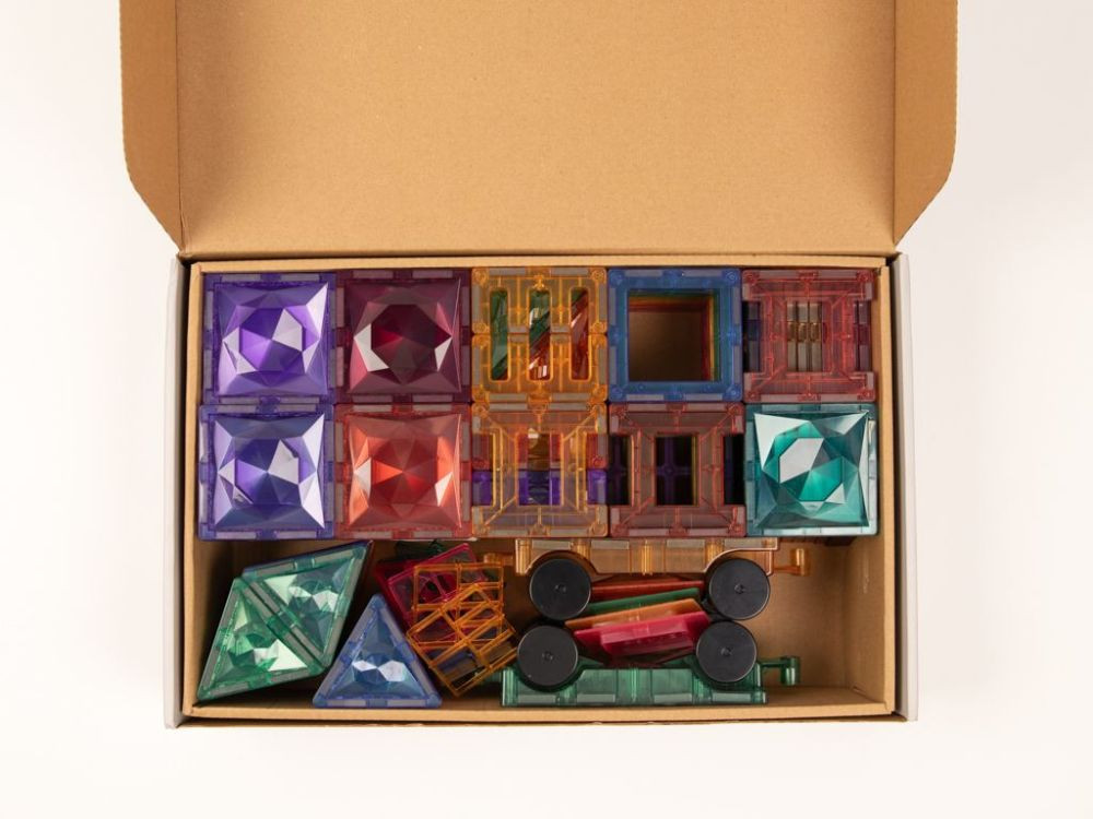 A mágnesek stabilan tartják az elkészült építményeket, ugyanakkor könnyen kezelhetők a kisebb kezek számára is. Egyes elemek különleges, „gyémánt” kialakítású felülete izgalmas fénytörést biztosít, így a gyerekek játék közben a fény és a színek látványos játékát is megfigyelhetik. A készlet minden alkalommal új élményt kínál, és más szettekkel kombinálva még nagyobb, összetettebb alkotások hozhatók létre.