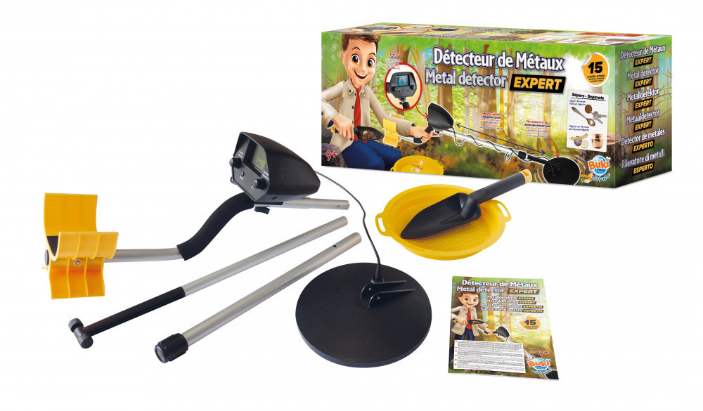 A Buki France KTD2000 Expert fémkereső a KT7020D digitális fémkereső fejlettebb változata. A két modell közötti legnagyobb különbség: az LCD-kijelző jelzi a talált fém típusát – vasat, acélt, rezet, alumíniumot, ezüstöt és aranyat egyaránt felismeri. Ez nemcsak izgalmasabb, hanem tanulságosabb is: a gyerekek megismerhetik a különböző fémek tulajdonságait és felhasználását.