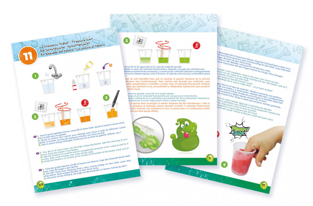 Nem csak egyféle slime-ot – hanem egy egész slime-univerzumot! Készíts éjjel világító foszforeszkáló slime-ot, arany csillogású gold slime-ot, puha és bolyhos fluffy slime-ot, vagy extrém ragacsos ultra-slime-ot. A 20 kísérlet mindegyike részletesen és érthetően el van magyarázva a színes, illusztrált útmutatóban. Amazon France