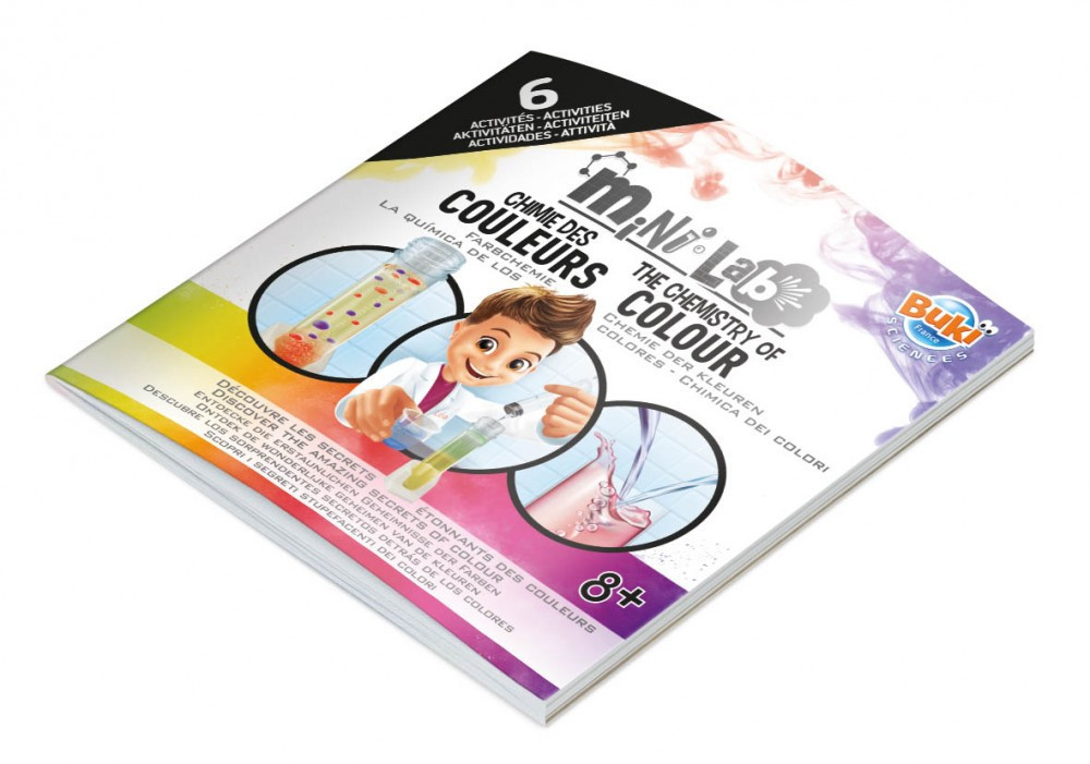 A Buki France 3013 Mini Lab Színek kémiája szett azt bizonyítja, hogy a tudomány gyönyörű is lehet. A készlet lenyűgöző színes aktivitásokhoz nyújt alapot: lávafáklya készítése, varázsleves főzése és sűrűségi koktél keverése mind szerepel a kísérletek között.
