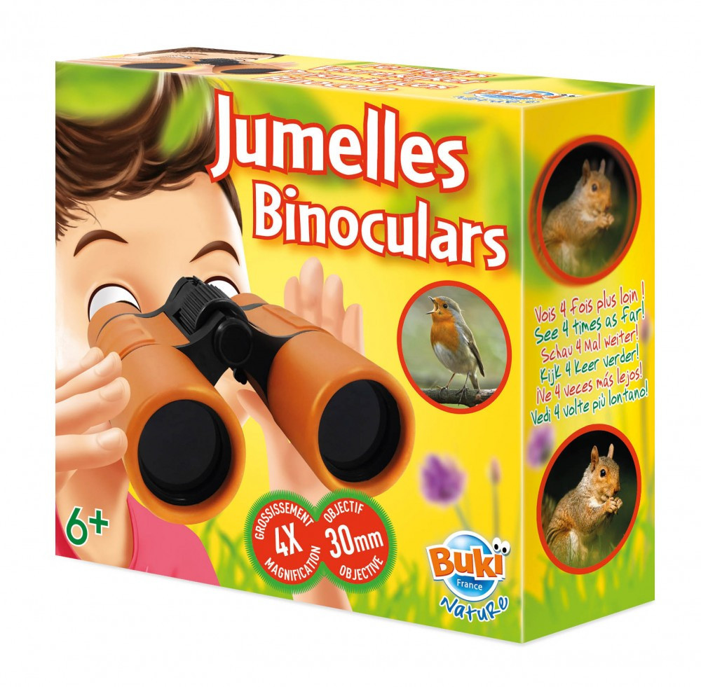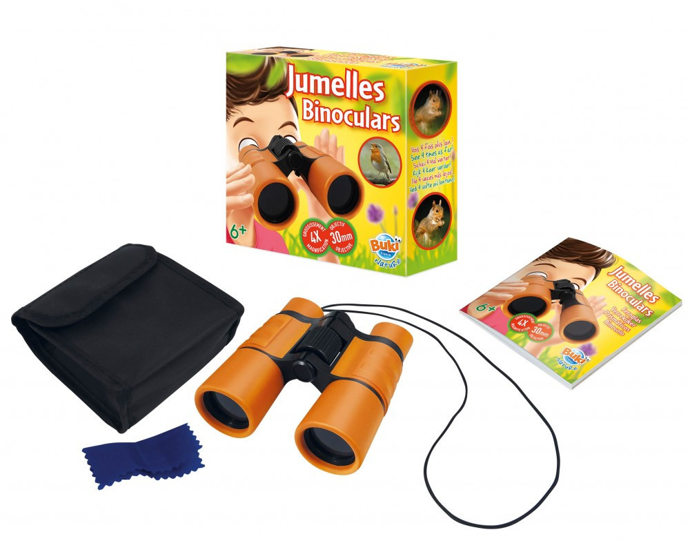 Az első binokuláris – négyszer messzebbre, kényelmes fogással! A Buki France BN009 gumibevonatú, állítható binokuláris 4×30 mm-es optikával, hordozótáskával, biztonsági nyakszíjjal és lencsetörlővel érkezik. 6 éves kortól ideális madármegfigyeléshez, természetjáráshoz és kalandozáshoz. Remek kis ajándék aktív, kíváncsi gyerekeknek!
