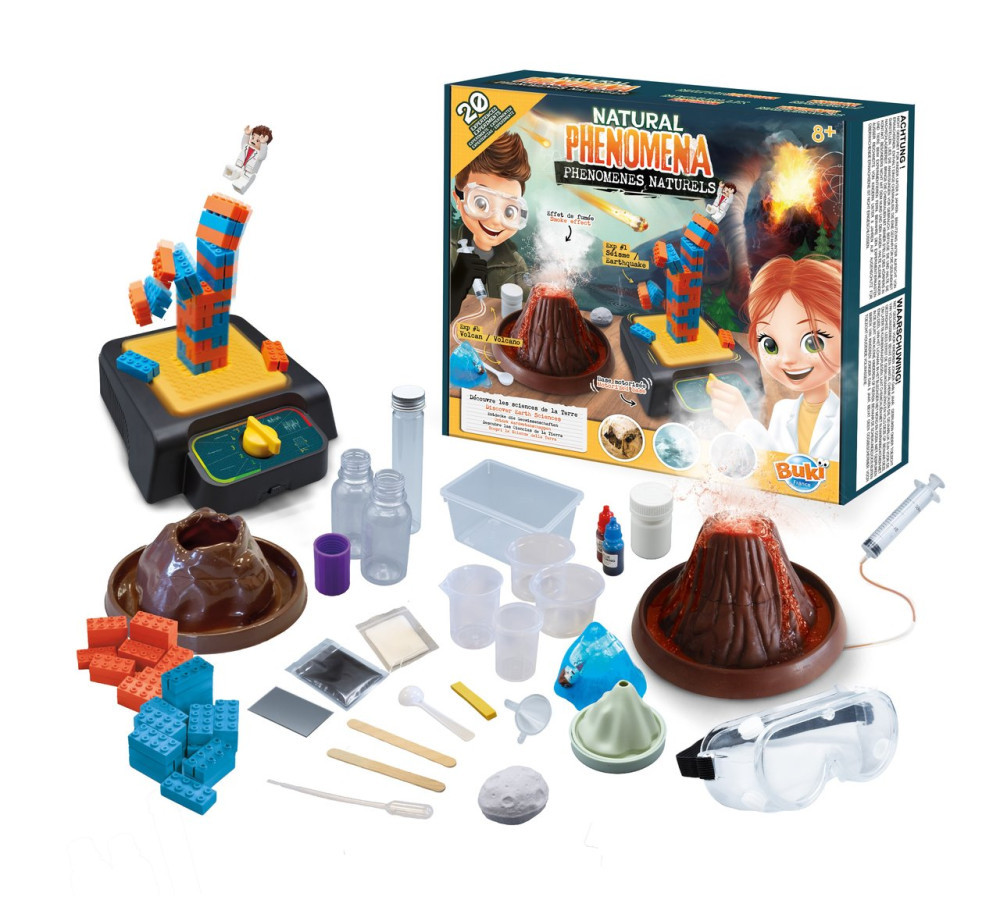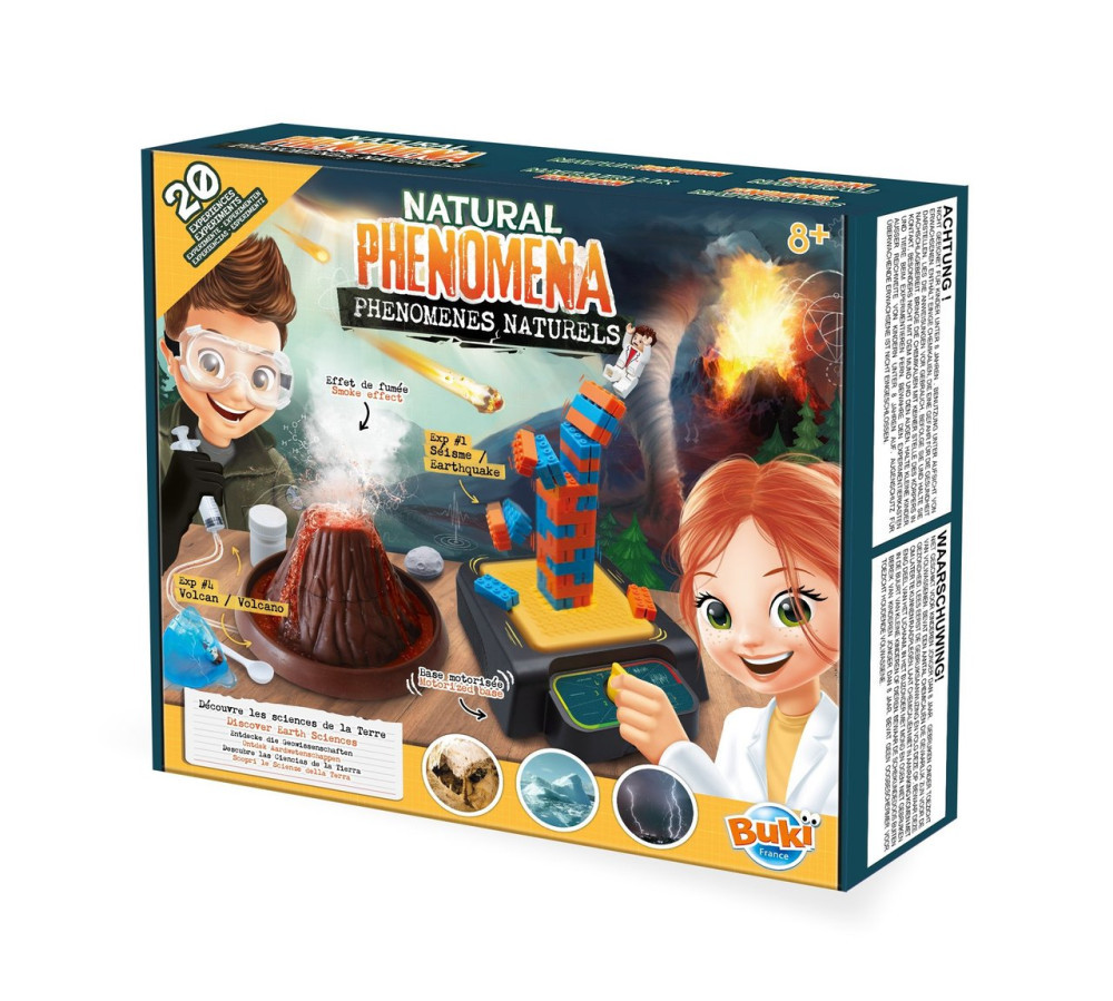 A Buki France 2170 Természeti jelenségek szett egyike a legimpozánsabb Buki kísérletezős készleteknek: 20 kísérlettel ismerteti meg a természeti katasztrófákat és a földi időjárási jelenségeket – vulkánkitörések, földrengések, tengeri tölcsérek, meteoritbecsapódások mind megelevenednek, miközben Léo figurája átéli a legpusztítóbb kataklizmákat.