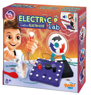 A Buki France 2172 Elektromos Labor a 7160-as Elektronika Expert sorozat belépő szintű, megfizethetőbb változata: 25 különböző áramkör megépítésével ismerteti meg az elektromosság alapjait, teljesen biztonságos körülmények között. A konzolra a mellékelt alkatrészek egyszerűen csatlakoztathatók – nincs forrasztás, nincs veszély.